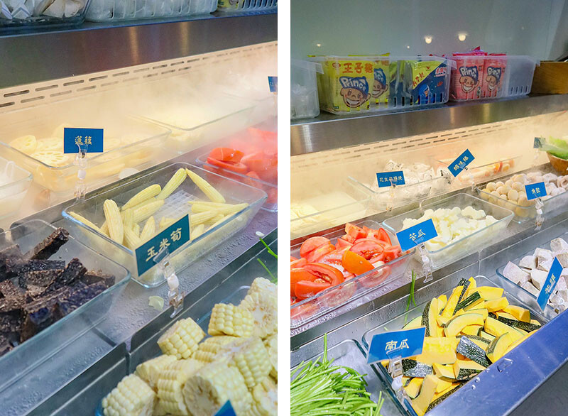 火鍋的菜盤就在自助吧自行取用