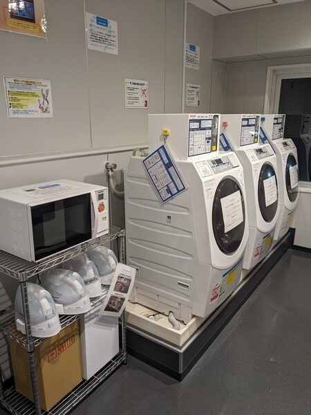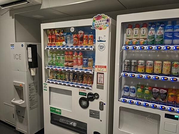 電梯旁的販賣機區也有投幣式洗烘乾機、微波爐及熨斗可提供使用。