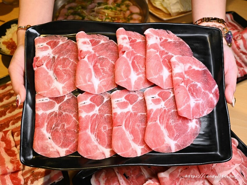 菁饌涮涮鍋雙人爆料系列鍋物除了超澎派的海鮮外,每鍋均會附上兩盤肉盤,有櫻桃鴨、牛胸腹及梅花豬可以選擇,肉品都是採用新鮮現切,口感新鮮,肉質軟嫩不柴