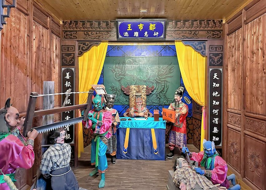 將軍府的一旁則是可以看到閰羅十殿,對於膽小的人或是小孩子來說會覺得有點恐佈,不少人也都直接選擇快閃;而在將軍府的後方則是有兵馬傭可欣賞,再另一側則是可看到古代商店舖等,像是當鋪、布匹店、藥材舖等等;這次來訪,二樓是沒有開放參觀。