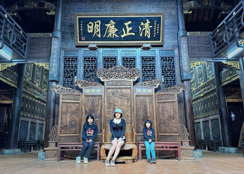 走過販售部後,會來到將軍府的前庭,設置了幾個古色古香的涼亭,讓旅人們可以坐在這休憩,小孩們可在一旁的池子餵魚;再走進將軍府,猶如走進時光隧道般,不少珍貴稀有的古董傢俱在這都可以欣賞到,也可以坐上部分的傢俱上拍照,這時如果穿著古裝就更有氛圍了!