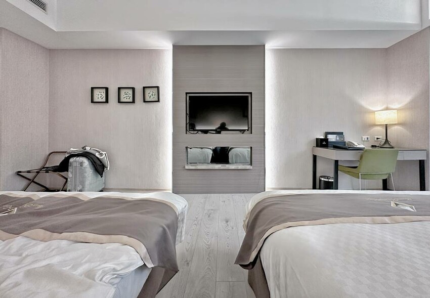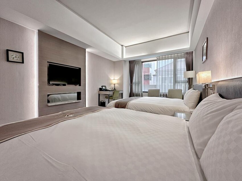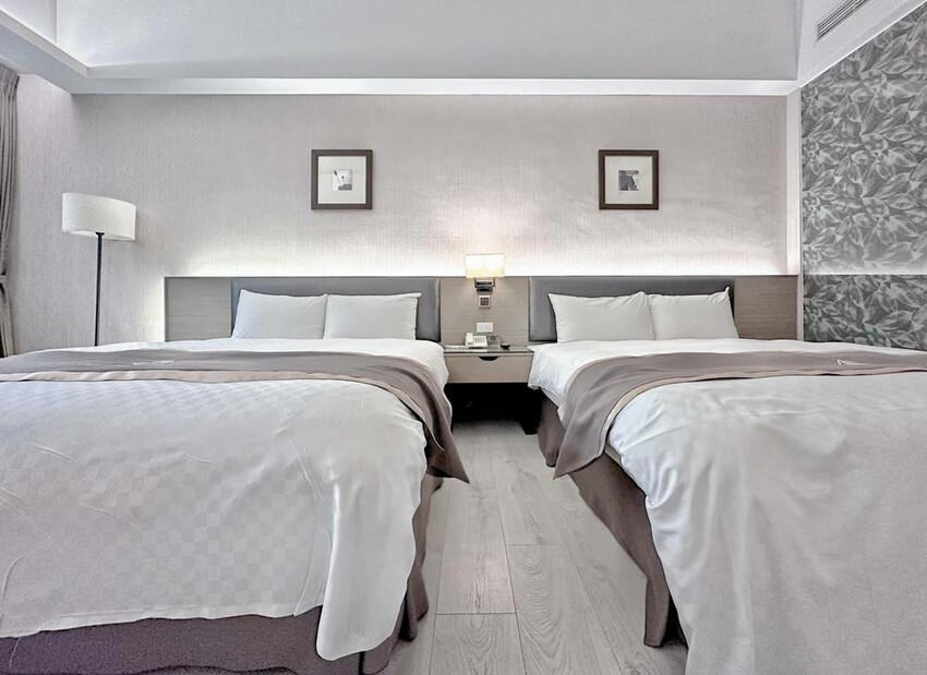 這一天我們一家四口入住的是位在3樓的尊貴家庭房,訂房是直接去電詢問飯店,一泊一食價格為4120元(僅供大家參考);尊貴家庭房坪數大約10坪,提供了兩張躺臥起來感覺偏軟的中床(150x180cm),當然也有提供睡枕及羽絨被,整體的躺臥其實蠻舒適!