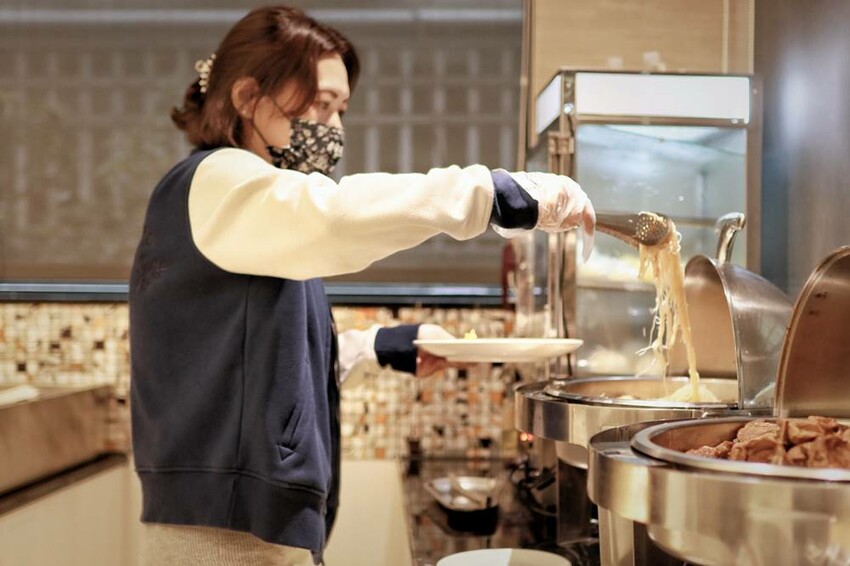 入住尊皇大飯店的早餐是在1樓大廳旁的”尊皇廳”用餐。早餐供應時間為06:00-09:30,憑票券入場用餐,早餐提供自助式Buffet餐點,想吃什麼想吃多少都可以,用餐時間若遇住客數多會有分流限制,但住客數不多基本上就是無限制,可放鬆自在的用餐。
