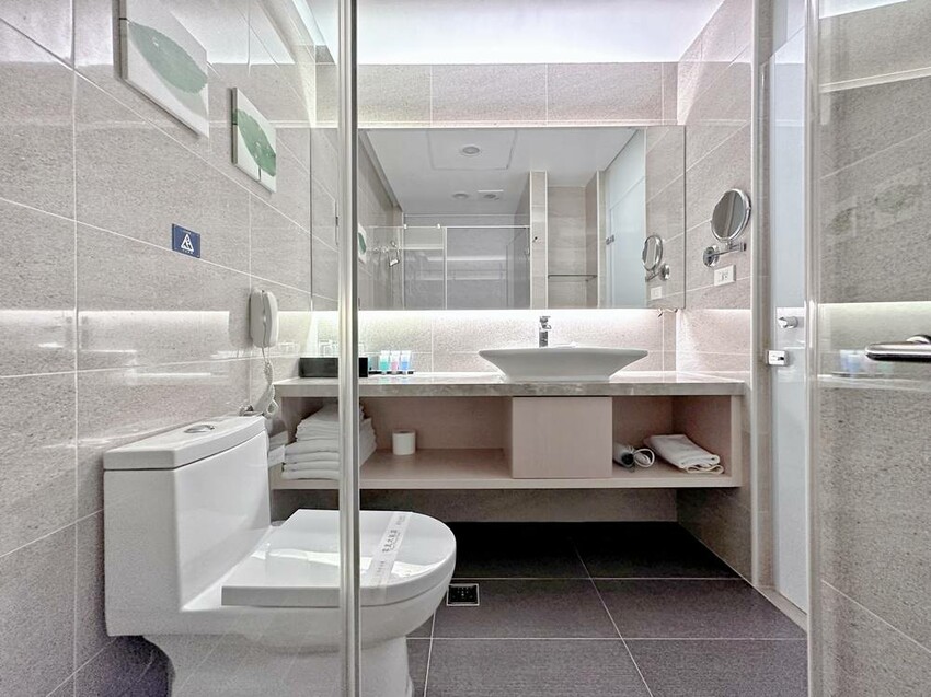 衛浴設計是乾濕分離,僅可淋浴,無法泡澡是真的可惜了些(這就是檸檬妹沒看到浴缸生氣氣的原因),而基本的盥洗用品也都有提供,如吹風機、毛巾、浴巾、牙刷(膏)、洗髮乳、沐浴乳、梳子等備品都一應俱全。