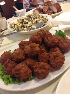 北平都一處是台灣有名的老店,其中的鎮店之寶便是圖中這個需要預定的超厚蔥油餅,百聞不如一吃之真的料多又紮實,洋蔥跟綠蔥的內饀滿滿,不過我個人是比較愛蔥抓餅的口感,餅皮酥酥脆脆的才香啊北平都一處:仁愛路四段506號北平都一處:https://www.facebook.com/media/set/?set=a.418647381585951.1073742064.326272130823477&type=3這個炸丸子我愛翻了,怎麼有可能可以這麼好吃!!!!如果來一定要點啊~~趕快在自己的筆記本上highlight燒餅包醬肉是招牌之一,真的也是一個厚呷~~松子雞的味道也很棒,肉質多汁油滑配合這個大蔥油餅,店家會建議來個8-12人,我覺得真的是如此,因為這裡好吃的菜好多,人太少會有遺珠之憾呦
