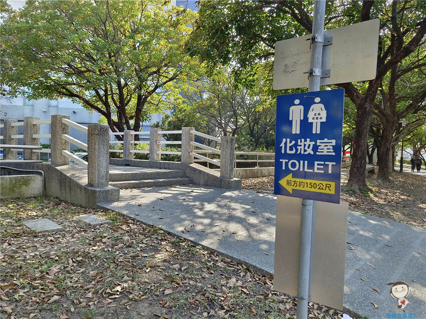 還很貼心地標示出來,往前150公尺就有化妝室了