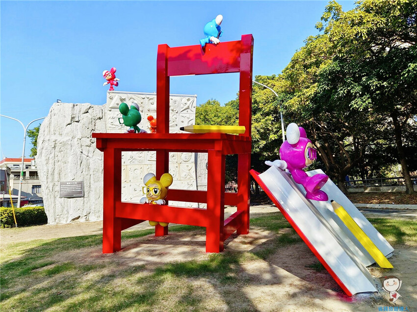 整個園區最吸睛的,莫過於這個巨無霸紅色座椅和旁邊打開的書本