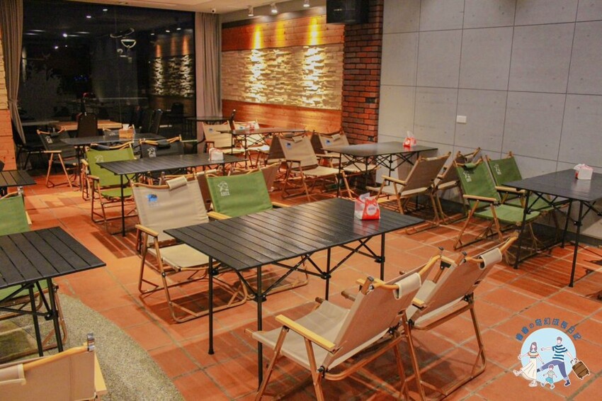 用餐的空間很寬敞,可以自由選擇座位,露營風的座位超可愛的!