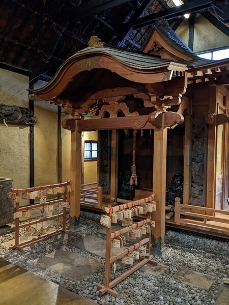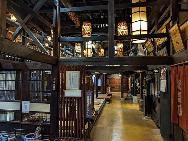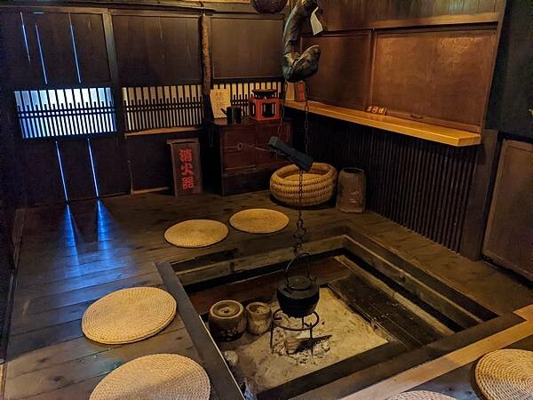 這裡有7間從日本各地移築過來的古民家,打造成一個山中小鎮,穿梭其中有種時光倒轉感覺。入口處長屋門二樓觀景台可一覽全館景致,沿路幾間古民家,變身為古物收藏館,這邊收藏豐富可比小型博物館。沿路看著這些收藏花了好多時間才來到本陣CHECKIN。