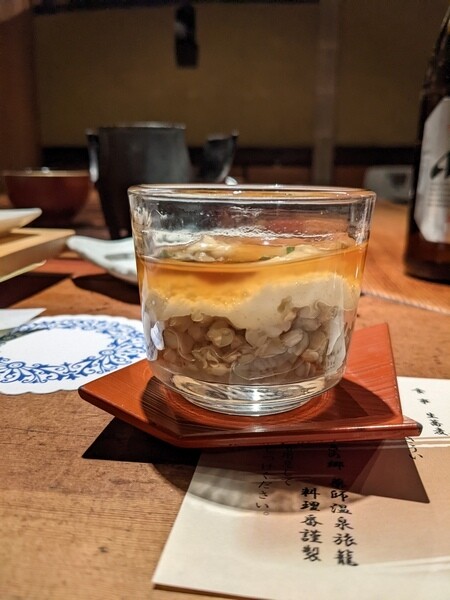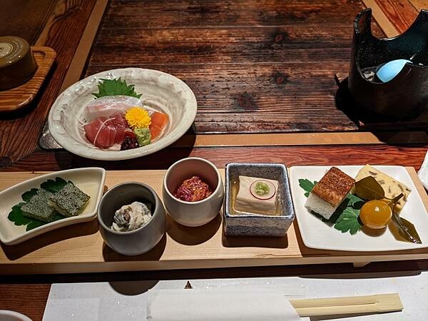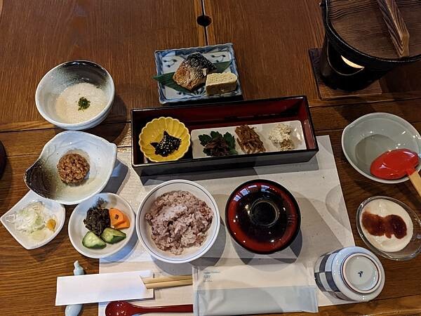 晚餐前先去泡個湯,晚上用餐的地方在濱田邸,每個房間都有小客室獨立的用餐空間,即使我只有1個人,豐富料理吃到最後蕎麥麵還問我有沒吃飽還需要吃飯嗎?
