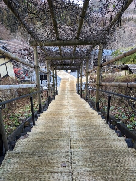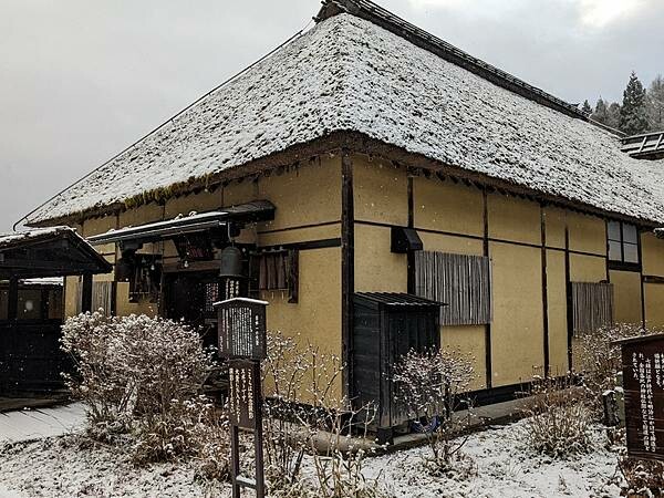 後來問了旅館才知道這是今年初雪(12月上半),早餐用餐的地方又是另一處古民家小林家,入座後還幫我把窗戶打開,能用邊用餐邊欣賞窗外飄雪風景。