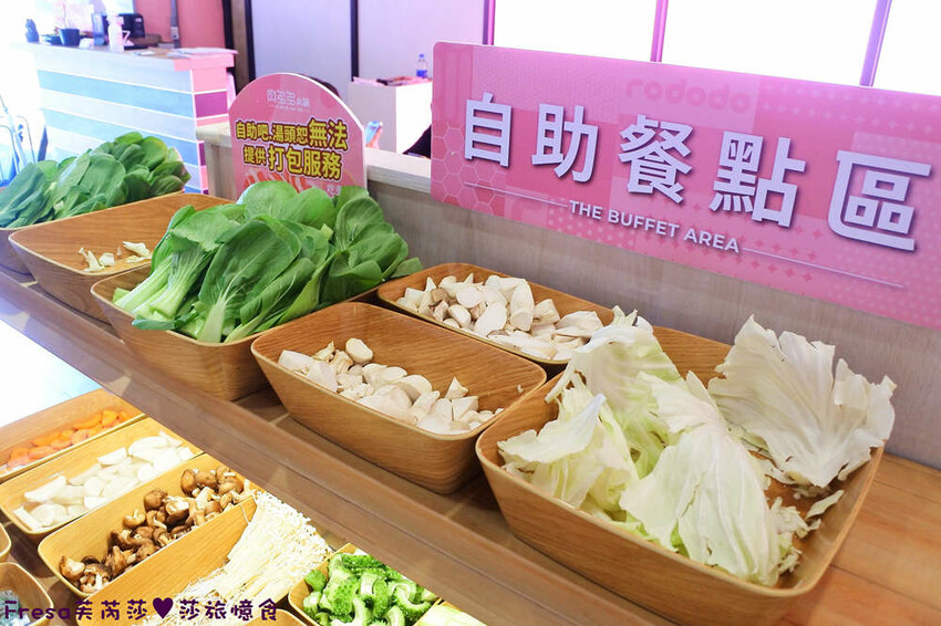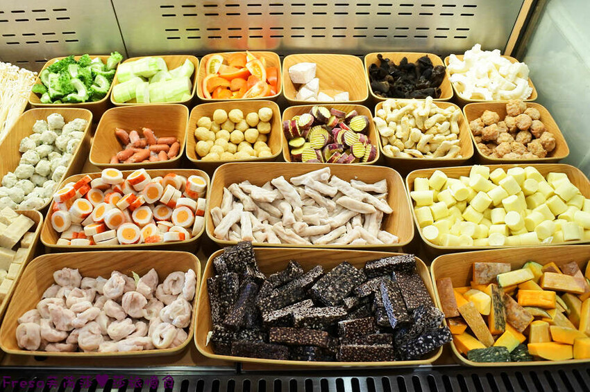 店內數十種自助蔬菜火鍋料吧廣受歡迎.
