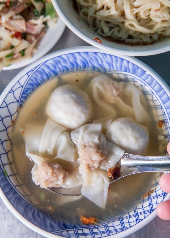 乍看我不是很懂乾麵和陽春麵的分別,猜想乾麵就是麻醬麵吧?不是有人這麼說?但因為友人推薦的是像基隆的乾麵,於是問了乾麵是麻醬麵嗎?店裡的大姐說不是,就是一般的乾麵,於是點了乾麵、配餛飩魚丸湯,來個假基隆之旅。