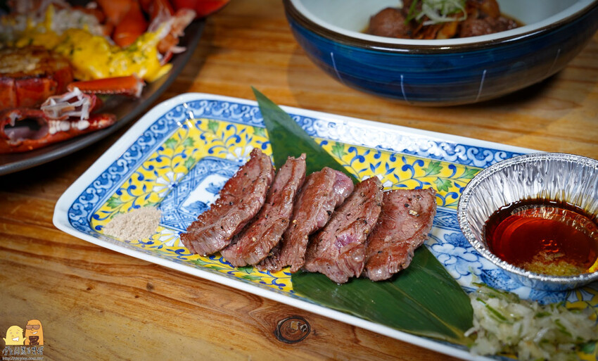 有種中西合璧感覺!沾日式醬油變得有點像照燒甜甜鹹鹹,但切的大大塊又像是牛排一樣