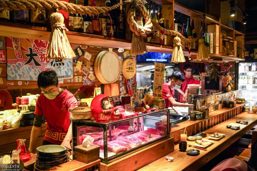 台北微風建一食堂店內就像是很有氛圍的日式料理店,充滿了日本風情的裝飾,加上吧檯拿著日式菜刀切著生魚片的師傅,滿滿的日本味讓人就想喝冰啤酒配燒肉!