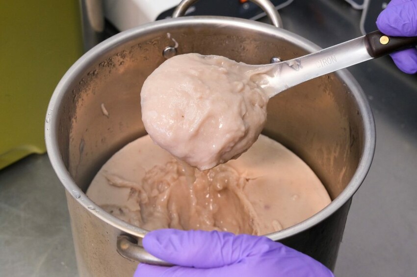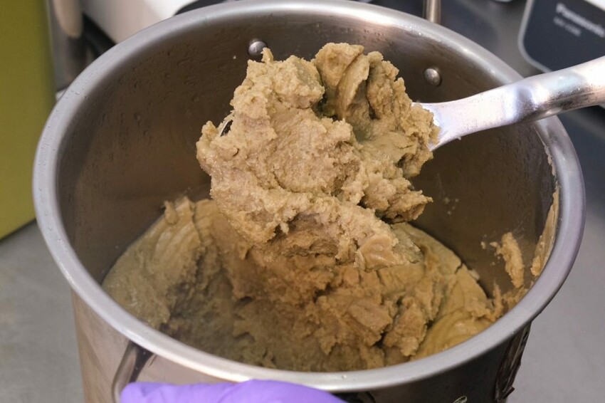 ▼【頃刻間綠豆沙牛奶專賣店】的飲品都是每日新鮮現做,黑糖和餡料都是手工現煮顧火攪拌而成,將煮好的綠豆和芋頭打成泥狀後放入冰箱冷凍,再搭配鮮奶以黃金比例現場打製,因此質地喝起來更加細緻,真的是相當費時費工。
