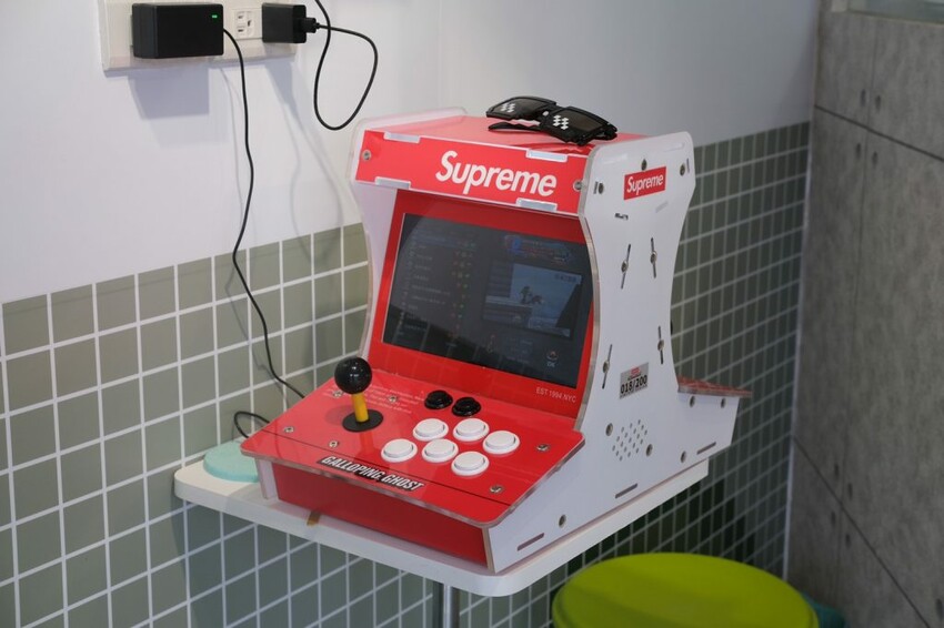 ▼【頃刻間綠豆沙牛奶專賣店】現場提供桌上型電玩,只要購買飲料就能夠免費玩,除了單打之外也可以兩人雙打。讓大家等待飲料的同時也不無聊。