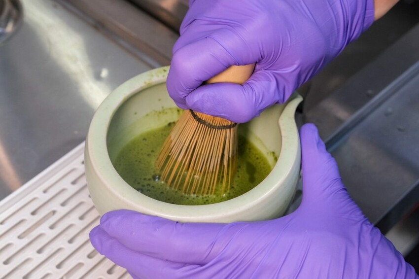 ▼適合冬天暖心的抹茶旅人,嚴選日本靜岡進口抹茶粉,先用竹製抹茶刷打茶起泡,再真材實料倒入鮮奶,讓茶香更明顯,微苦充滿甘淡雅氣息,喝得出講究的職人用心精神,可以做成冷飲或熱飲。
