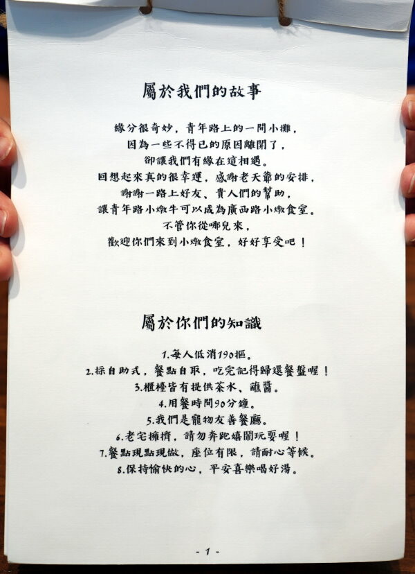 ▼門口掛有小燉食堂的招牌及菜單,等待的空檔也可以先參考一下!