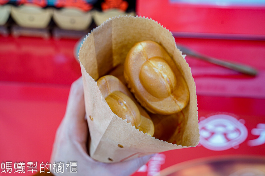 剛烤好的元寶雞蛋糕吃起來皮比較酥脆,原味沒有包餡也能吃到淡淡的香甜風味,口感紮實彈牙,越吃越香喔。