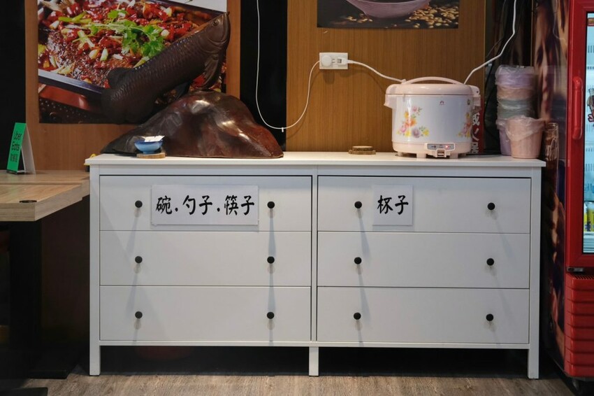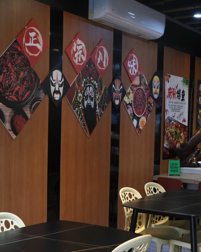 ▼【鱻味麻辣烤魚】用餐環境很有中式特色,牆面的圖畫掛飾及木質調設計,打造出古色古香的典雅風格。