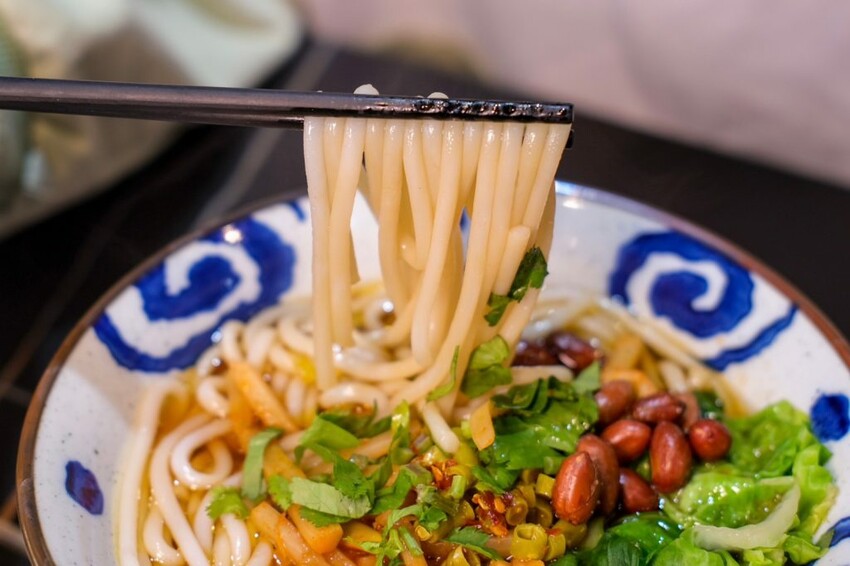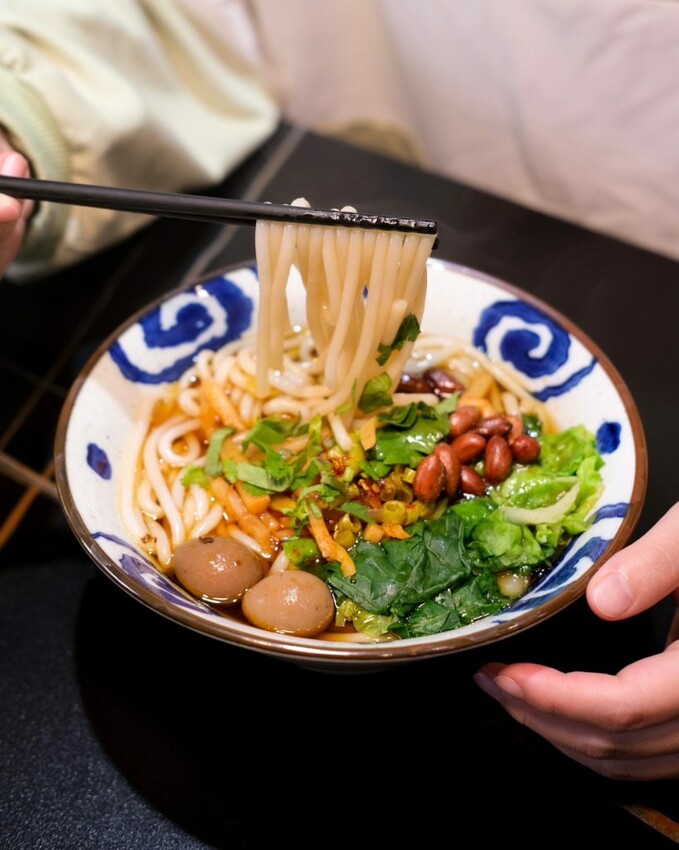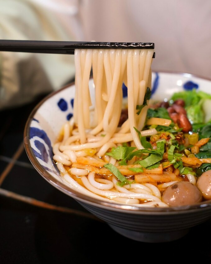 ▼正宗的螺獅粉在這裡也吃得到,特別的是以大骨取代螺類,搭配花生、酸豆、酸筍、鳥蛋和青菜,有酸又有辣,喝起來更加順口對味,並且選用Q彈的粗米線麵條,吃起來的口感更加豐富帶勁。