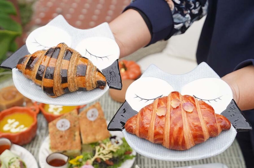 可頌的盤子好可愛,特別選用貓頭鷹造型