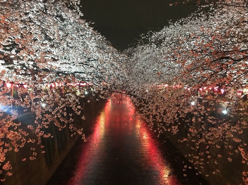 從「中目黒站」步行幾分鐘便可以抵達「目黑川」。目黑川全長約3.8公里的河道兩邊種植著830株的染井吉野櫻,每到櫻花季總是擠滿世界各地的賞櫻人潮,絕對是東京數一數二值得一看的賞櫻景點。
