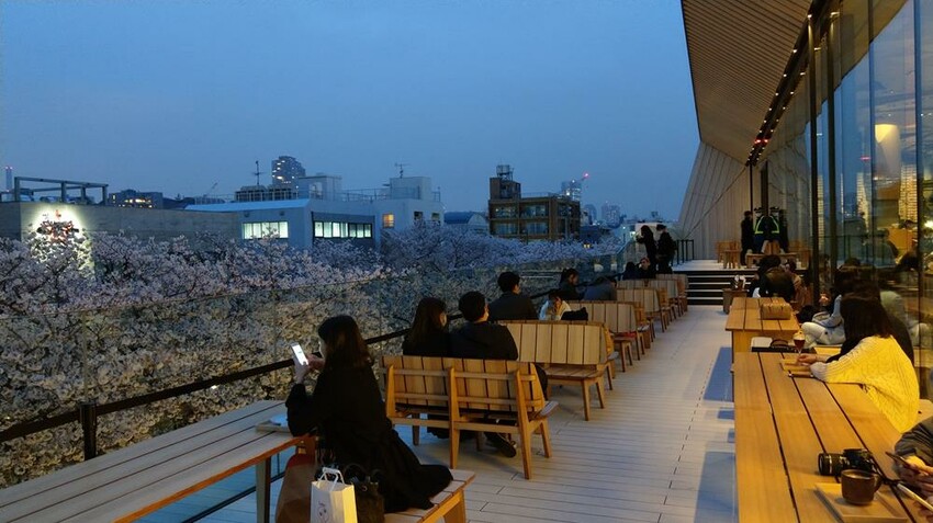 樓高四層目前是全球最大規模的星巴克旗艦店,而且有別於一般的星巴克店鋪,STARBUCKS RESERVE ROASTERY TOKYO以咖啡的遊樂園為主題。不但可近距離觀看咖啡烘培與沖泡過程,露天陽台位子可以眺望目黑川,櫻花季節時真的美不勝收,也因此雖然已經開幕多年,在熱門季節仍可能要預約拿號碼牌才能進場。