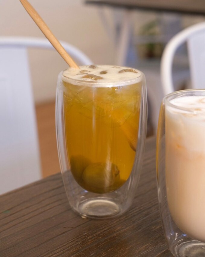 ▼飲品的表現都相當可圈可點,脆梅綠茶加入自釀的脆梅果肉,融入茉莉綠茶風味清爽。酸酸甜甜好開胃解膩;拿鐵系列嚴選奶味濃郁的初鹿鮮奶,綠茶和鮮奶的比例很剛好,喝起來順口不會太甜~