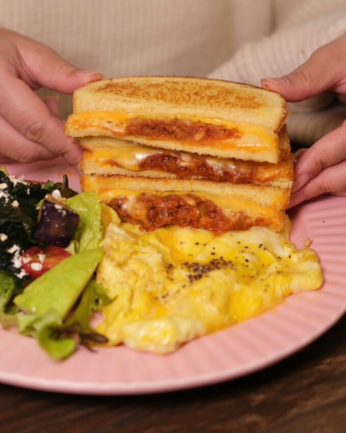 ▼邪惡爆表的肉醬起司乳酪熱壓吐司圓盤,以山形牛奶吐司搭配三種濃郁起司及肉醬製作,外層酥酥脆脆,中間的乳酪直接爆漿流出,咬下去滿是濃郁鹹香味,吃起來罪惡又好過癮。