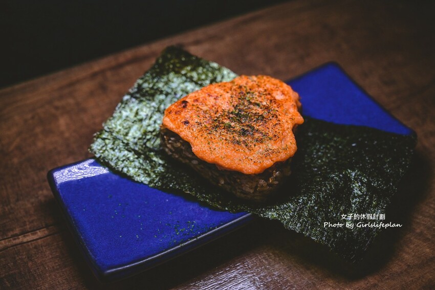 喜歡吃明太子絕對不能錯過這一道,飯糰烤到微焦帶有鍋巴香氣配上超厚鹹香明太子,不僅超有飽足感也好好吃唷