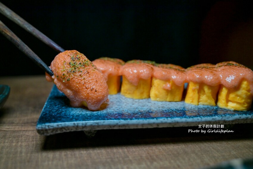 玉子燒入口在嘴裡爆汁的香甜滋味好水嫩,,配上炙燒過的明太子鹹香波波的口感,超級無敵愛。