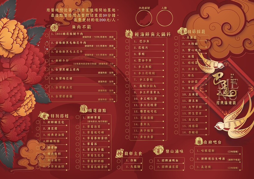 紅紅火火的花兒象徵著吃麻辣火鍋的熱鬧氣息,環境真的非常典雅有風韻,才剛開門就已經座無需席,還需要稍等一下可見《巴適經典麻辣鍋》熱門程度。