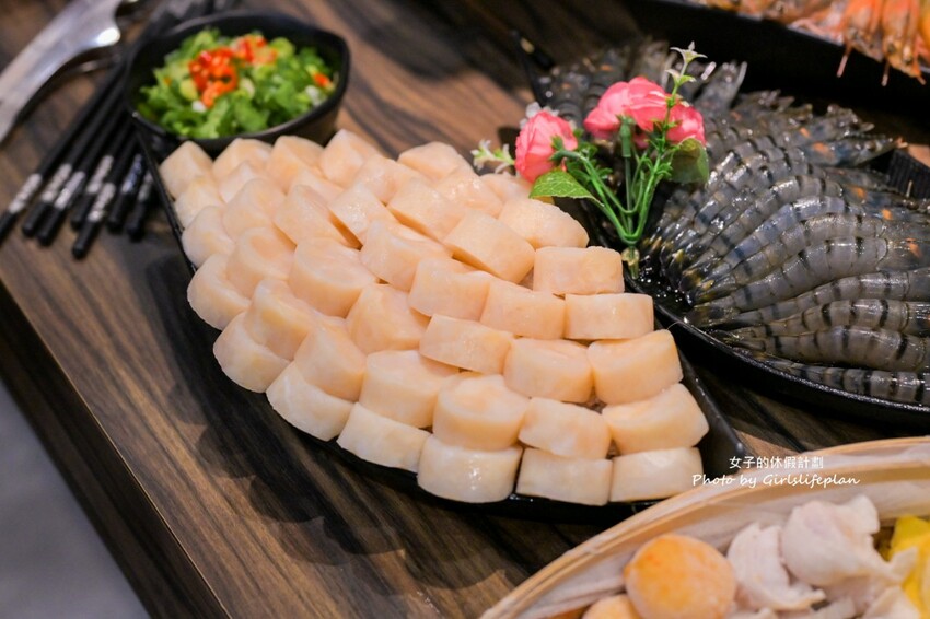 擺盤也太有氣勢了吧,真的像是來了一艘海鮮船一樣活跳跳耶,無刺的巴沙魚吃起來很細緻很嫩口不錯,草蝦也好好吃鮮到不行,聚合干貝非常大顆比50元硬幣還大。