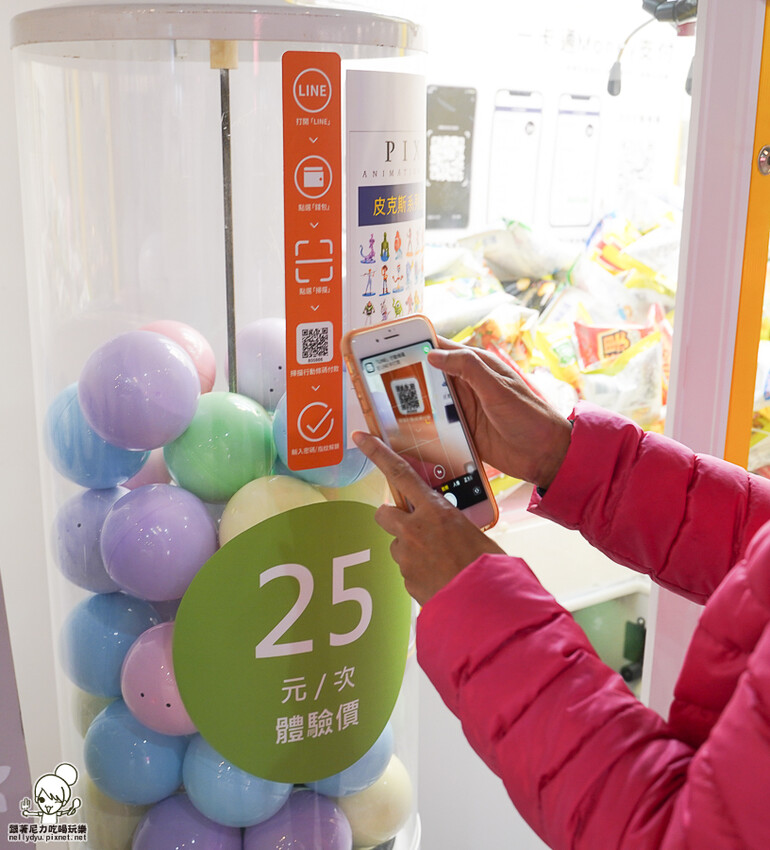快來玩扭蛋,只要25元,就可以把正版的皮克斯小公仔帶回家