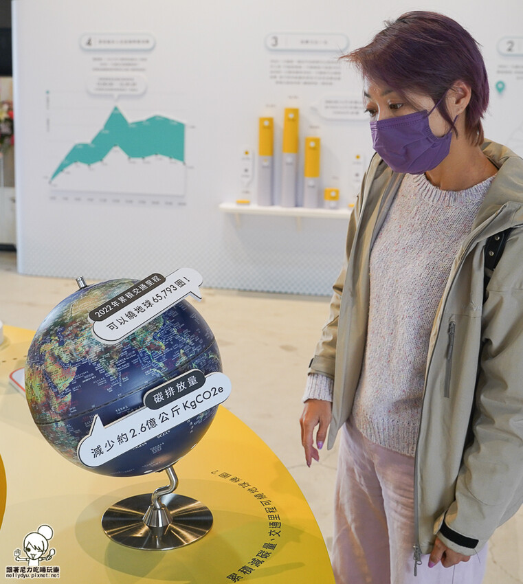 可以環繞地球65,793圈減少 2.6億公斤的二氧化碳,提醒大家可以多搭乘交通工具節能減碳