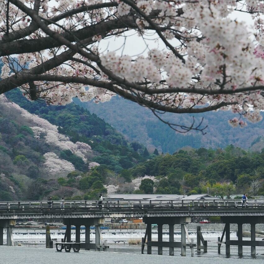 渡月橋可說是嵐山的地標,來到嵐山,一定要來渡月橋,欣賞專屬於嵐山的優美風景。使用木材建造而成的渡月橋,看起來更有韻味。走上渡月橋,眼前遼闊的天空,以及壯闊的山景,不禁讓人感到心曠神怡。也常有遊客會在河岸邊,買杯% ARABICA的咖啡,坐在這裡享受暖陽、以及美好的午後時光。