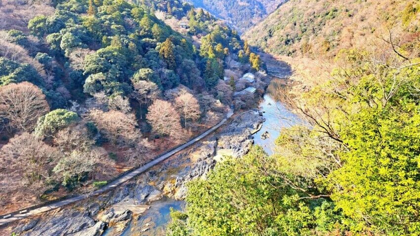嵐山一日遊路線2:嵐山小火車+保津川遊船+嵐山景點搭乘JR嵯峨野線到「JR嵯峨嵐山站」→旁邊至「嵐山小火車嵯峨站」乘坐小火車→「嵐山小火車 龜岡站」。「嵐山小火車 龜岡站」步行或搭乘巴士→保津川遊船上船處→約2小時內抵達保津川碼頭(嵐山公園附近)。然後依序順路以下嵐山景點:大河内山荘→常寂光寺→嵯峨野竹林小徑→嵐山公園展望台→祐齋亭→天龍寺→野宮神社→嵐山大街→嵐山渡月橋→嵐山猴子公園。
