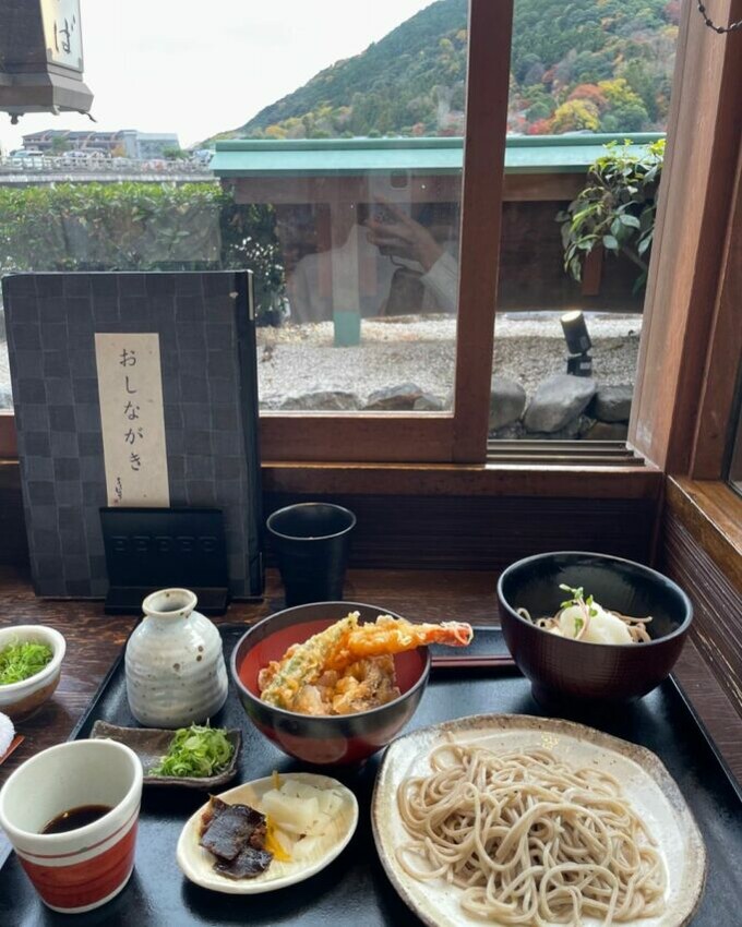 一樣位在渡月橋旁,標榜手打的蕎麥麵,蕎麥香氣十足,而且可以吃到不同的蕎麥麵吃法,讓這裡的人潮總是大排長龍、絡繹不絕。嵐山よしむら除了蕎麥麵以外,最有名的就是直面桂川以及渡月橋的超大窗景,這樣的美景配美食,絕對是來到嵐山必訪的餐廳。