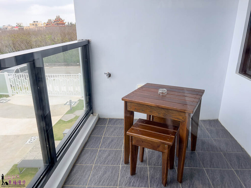陽台也有放置著簡單的桌椅,坐在這裡吹吹風看看風景也是很愜意啊!
