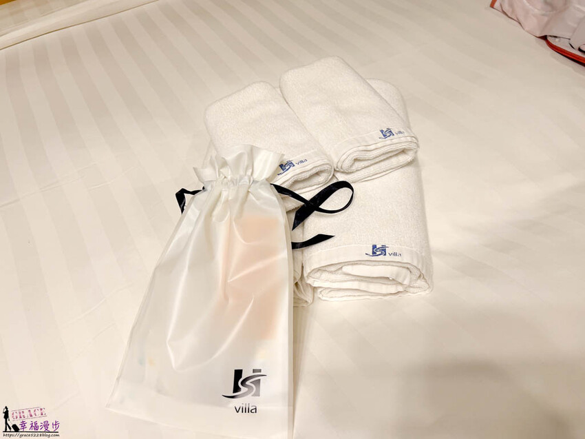 備品和浴巾就放置在床上,床鋪的柔軟度剛好很適合我。