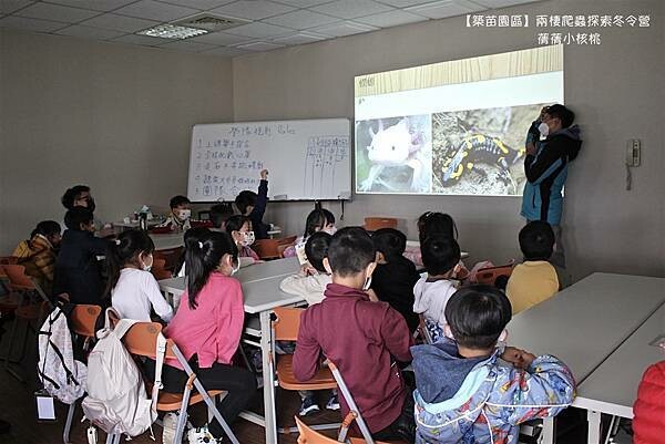 上課中,蜥蜴老師以簡單易懂的話語,告訴孩子有關兩爬動物的專業知識。