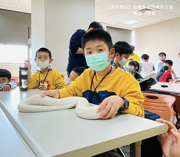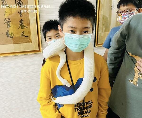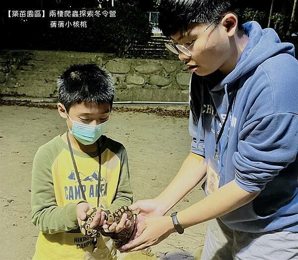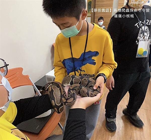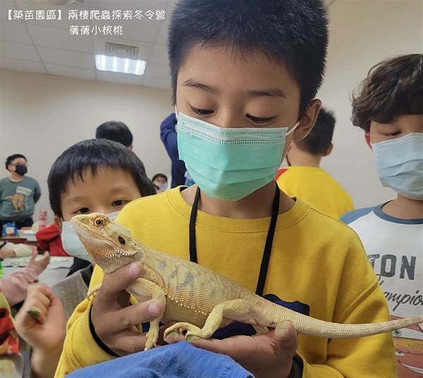 雖然孩子的這些願望,目前無法如願,不過,這個寒假,艾琳透過小核桃學校志工媽媽的推薦,幫孩子報名了台中很夯的兒童營隊~『築苗園區-兩棲爬蟲探索冬令營』。