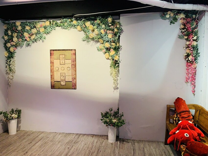 老闆還特別設計一個網美牆,準備了龍蝦布偶,讓用餐客人除了吃得開心,也可以留下美美的回憶。