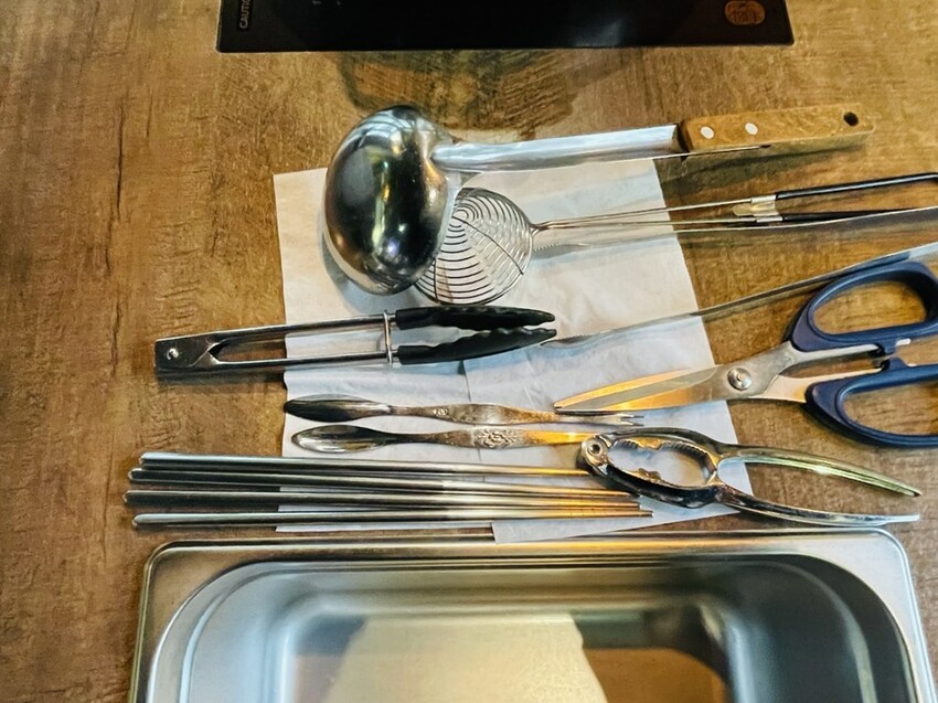 最主要就是剪刀、挖杓,直接把瞎殼跟蟹殼檢開,都是滿滿的肉。