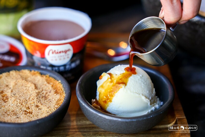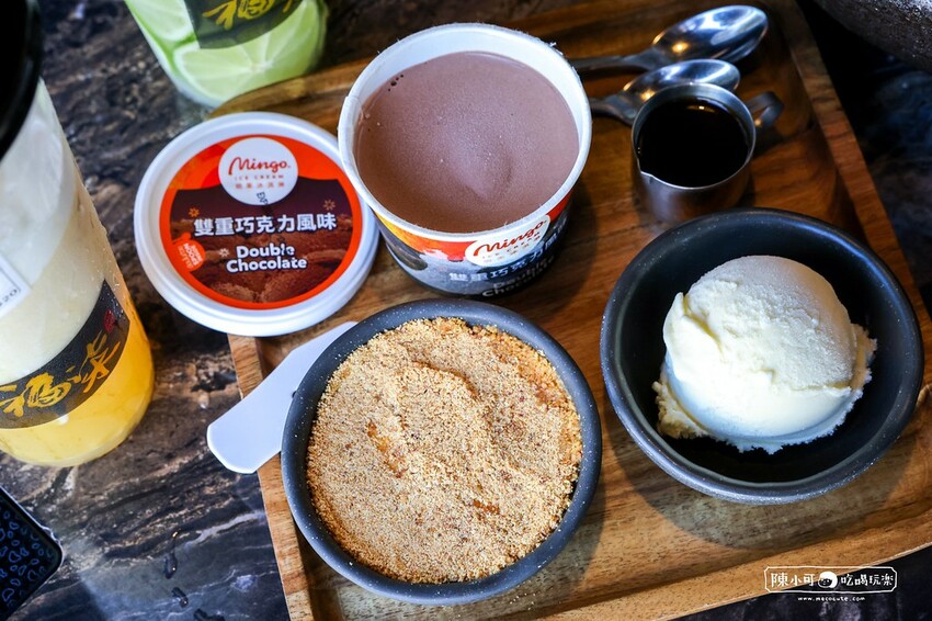 福柒使用泰國明果的雙倍巧克力冰淇淋,濃郁好吃!黑糖花生奶酪使用桃園有名的張豐盛花生,奶酪滑順綿密、香氣十足,加上知名的花生粉超濃厚,這也是福柒的人氣甜點推薦。