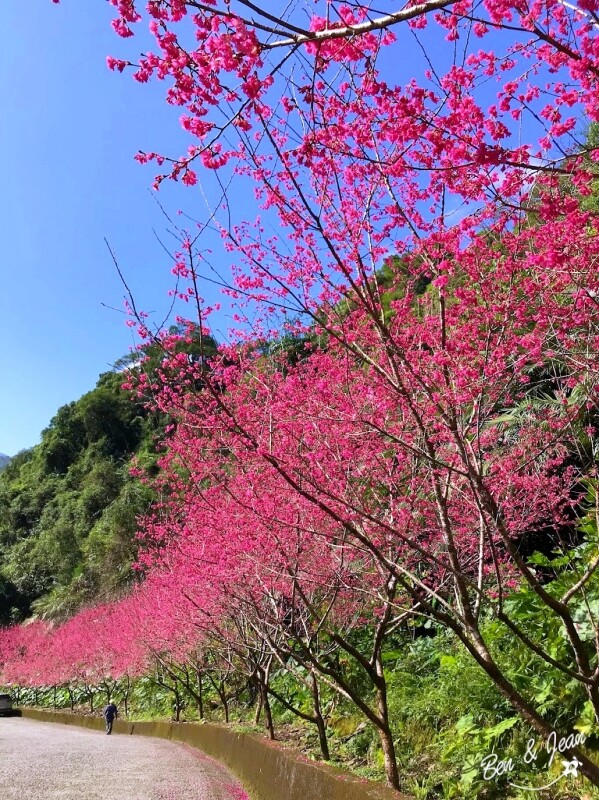 雖然櫻花不是一同盛開,但號稱宜蘭最美櫻花林道一點也不為過!沿途水泥地平坦好走,偶有人開車上來可會車。步道沿途雖可停車,但建議可停在山下,以步行方式沿途欣賞,避免人車爭道破壞美景喔!