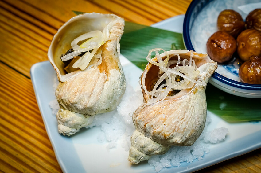 烤海螺的個頭不小,螺肉也是很大一條,肉質Q彈帶勁又多汁。