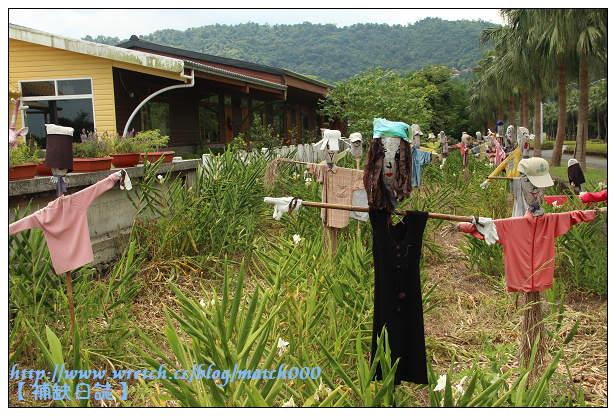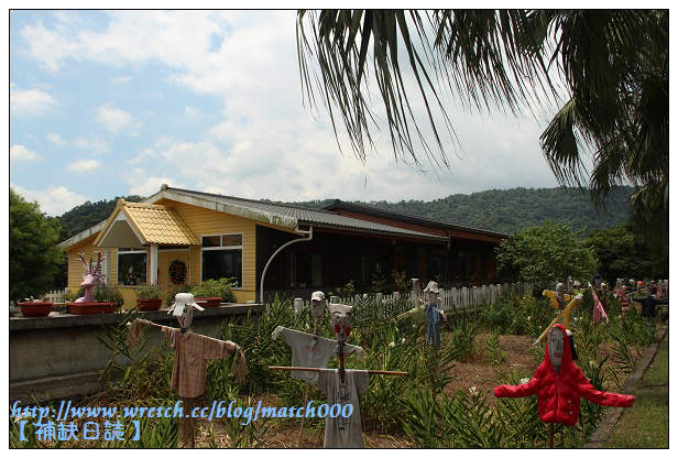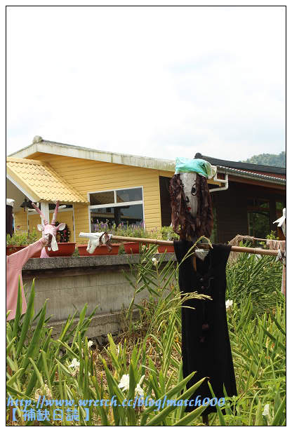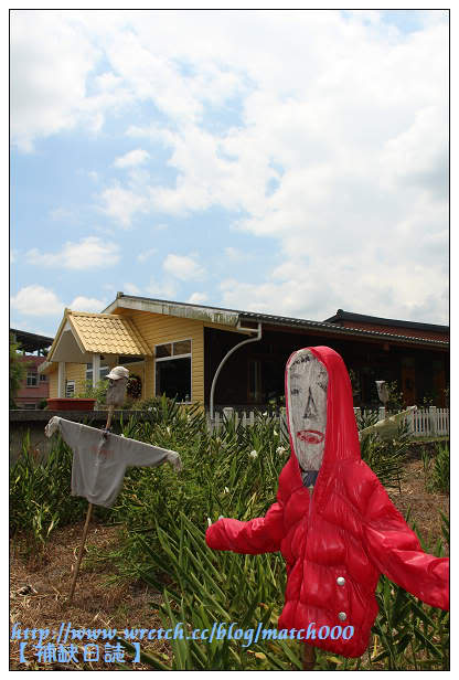 是一間平房式的民宿,旁邊的田地沒有種東西,倒是插了不少蹈草人。